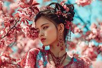 schilderachtig Japan met fictieve personen of onderwerpen in een fantasiewereld