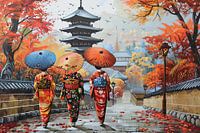Digitaal beeld van schilderachtig Japan met fictief landschap of persoon.