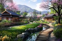 schilderachtig Japans digitaal beeld van fictief landschap of persoon
