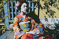 Digitaal schilderachtig beeld van fictieve personen of landschappen uit Japan