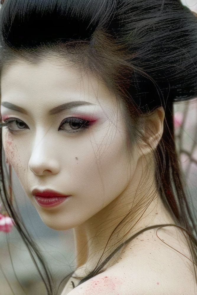 Digitaal schilderachtig beeld van fictieve personen of landschappen uit Japan