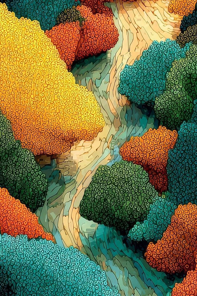 Fictief fantasievol schilderachtig abstract kleurrijk landschap