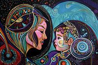 Digitaal schilderachtig beeld van surrealistisch fictief persoon of personen in een fantasiewereld