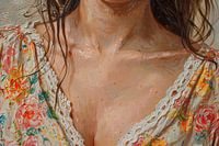 Boudoir schilderachtig beeld van vrouw in Van Goghkleuren