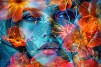 Flowerpower digitale fantasiewereld met fictieve personen in kleurrijke bewerkingen