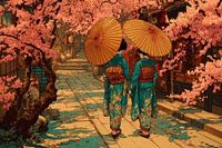 schilderachtige japanse kunst met heldere kleuren en fijne details