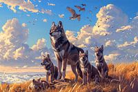 digitaal schilderachtig fictief beeld van wolven in de vrije natuur