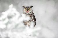 Northern Great Horned-owl aan het schreeuwen, wij noemen hem Canadese oehoe. Prachtige winter setting
