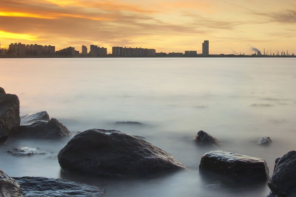 Terneuzen tijdens het avondlicht gezien vanaf "De Griete"