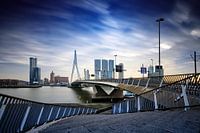 skyline van Rotterdam langs de Maas met de karakteristieke Erasmusbrug en de moderne architectuur op de Kop van Zuid
