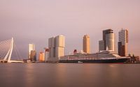 cruiseschip ligt aangemeerd aan de kop van zuid met een dreigende lucht op de achtergrond.