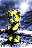 Dit aangrijpende kunstwerk toont een eenzame teddybeer die in de regen zit, wachtend op een glimp van hoop. De felle kleuren van de beer steken af tegen de sombere achtergrond, waardoor een gevoel van melancholie en verlangen ontstaat. Perfect voor diegenen die de schoonheid in verdriet waarderen.