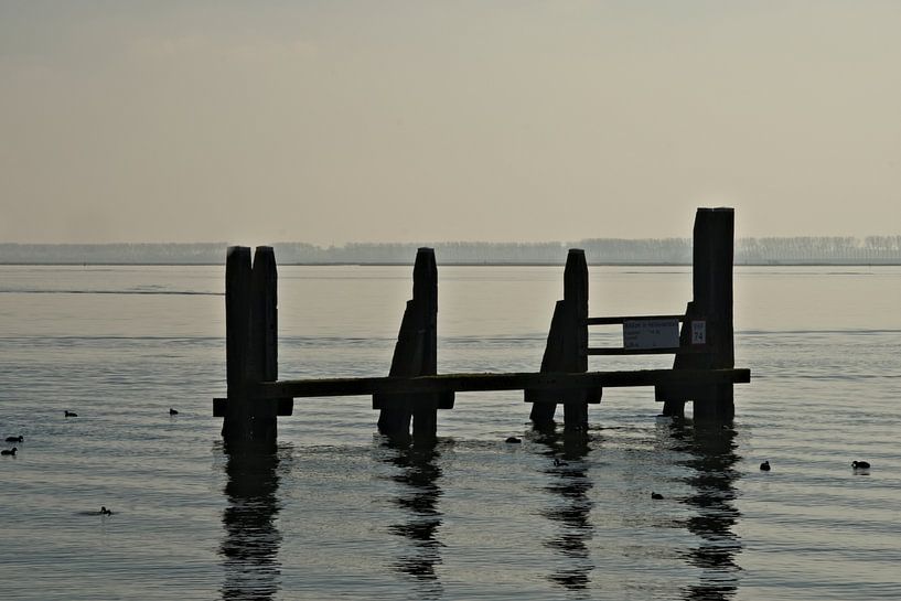 "Verdwaald in de kabbelende wateren, staat deze houten structuur als een stille getuige van geschiedenis en functionaliteit. ?✨