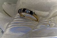 Oude ring, nieuwe handschoenen, de ring weerkaatst blauw licht.