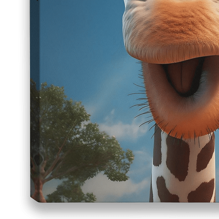 Dit levendige portret van een speelse giraf is een vrolijke aanvulling op elke kinderkamer. De giraf staat centraal, getekend met levendige kleuren die bruisen van energie. Zijn nieuwsgierige ogen en vriendelijke glimlach brengen een speels karakter naar voren. Een perfect kunstwerk om de verbeeldingskracht van elk kind te stimuleren.
