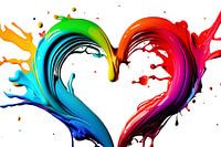 ai gegenereerde plons in hartvorm uit verf in regenboogkleuren op witte achtergrond
