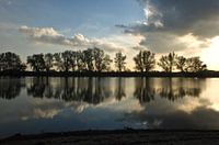 Fotografie George Burggraaff, fotonr. gb237816, bomen spiegelen in de Koepelplas in de uiterwaard van rivier de Waal