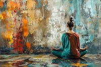 spiritueel beeld met vele kleuren verwijzende naar de chakra's en aura's ,de paranormale wereld tussen hemel en aarde