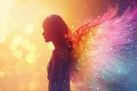 spiritueel beeld met vele kleuren verwijzende naar de chakra's en aura's ,de paranormale wereld tussen hemel en aarde