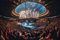 digitaal fotorealistisch beeld van fictieve mensen actief in sportschool of stadion