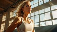 digitaal fotorealistisch beeld van fictieve mensen actief in sportschool of stadion