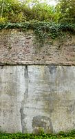 Groot staand panorama van een muur van Fort Nieuwersluis, Utrecht, Netherlands. Fort Nieuwersluis is van Natuurmonumenten en onderdeel van de Stelling van Amsterdam en de Nieuwe Hollandse Waterlinie.
