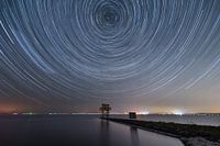Startrail van 2 uur gemaakt aan de kust van Schouwen-Duiveland, Zeeland.