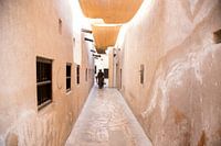 oude arabische architectuur in dubai. moderne en oude gebouwen vol met historie van de verenigde arabische emiraten, kleurijke foto's. hout en industrieel samen zorgt voor een warme uitstraling. Een mooie reis met veel tegenstrijdigheden. door mooie steegjes gelopen en de grote winkel malls op het heetst van de dag bezocht. aardse kleuren in een modern jasje
