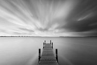 Aanlegsteiger aan het gooimeer in de buurt van het stichtse strand bij Huizen. Lange sluitertijd gebruikt om een mooie beweging in de lucht te krijgen. Foto omgezet naar zwart wit.
