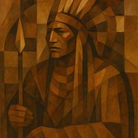 Dit abstracte olieverfwerk vangt de ziel van een indiaan in warme bruintinten, die kracht en sereniteit uitstralen. De expressieve penseelstreken brengen een gevoel van diepgang en verbondenheid met de natuur. Elk detail ademt spiritualiteit en tijdloze wijsheid. Het kunstwerk nodigt de toeschouwer uit tot introspectie en bewondering voor oorspronkelijke culturen. Een unieke blikvanger die zowel rust als mysterie toevoegt aan elk interieur.