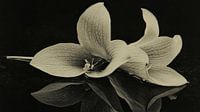 Dit kunstwerk heeft een elegante en mysterieuze uitstraling met een sterk contrast tussen licht en donker. De stijl doet denken aan een mix van botanische illustraties en fine-art fotografie, waarbij de bloemen en planten een bijna etherische, grafische kwaliteit krijgen. De zwart-witte en subtiel getinte compositie geeft het werk een…