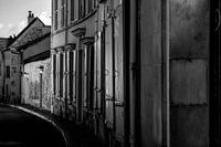 Mantes-La-Jolie; Een klein stadje langs de Seine vlakbij Parijs. Fotograaf Bert-Jan de Wagenaar belandde hier ooit tijdens een boottocht over de Seine waarop hij als saxofonist werkzaam was. Gelukkig had hij ook zijn camera bij zich, want dit stadje is werkelijk zeer fotogeniek. Bochtige straatjes met eeuwenoude verweerde huizen in het zachte licht wat we in Nederland nooit hebben, maar 400 kilometer zuidelijker al wel. Prachtige zachte tinten en mooie lijnen in deze schitterende plaat. Deze foto was al in kleur verkrijgbaar en nu ook in zwart wit.