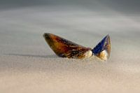Op het rustige strand, waar de zilte lucht en het ruisen van de golven heerst, ligt een enkele mossel schijnbaar verloren in het losse zand. De schelp is glad en glanzend, versierd met delicate strepen en subtiele kleurschakeringen die de weerspiegeling van de zon vasthouden. De zandkorrels omarmen de mossel als een dierbare schat, terwijl het getijde langzaam nadert en zich weer terugtrekt. Dit tafereel herinnert ons aan de eeuwige cyclus van de zee en haar gaven. De mossel, een nederige bewoner van de kust, vertelt verhalen van getijden, de eeuwigheid van de oceaan, en de tijdloze connectie tussen land en water. Het strand en de mossel vormen samen een rustige getuige van de veranderende natuur, waar eenvoudige schoonheid te vinden is in de kleinste details van het leven aan de kust.