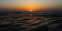 Een mooie zonsondergang aan de Zeeuwse kust. De ribbels in het zand en de weerspiegeling in water en zand geven dit beeld iets extra's. De warme kleuren zorgen ervoor dat dit werk in alle interieurs goed tot zijn recht komt.