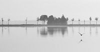Het natuurgebied 't Roegwold wat ten oosten van de stad Groningen tussen Harkstede en Schildwolde ligt bij zonsopkomst in zwart/wit bewerking.