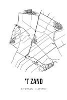 Zwart-witte landkaart, stratenplan of plattegrond van 't Zand. 't Zand is gelegen in de gemeente Schagen, provincie Noord-Holland. Op de stadskaart zijn alle openbare wegen in 't Zand opgenomen. Verder is de kaart voorzien van de coördinaten van het centrum van 't Zand.