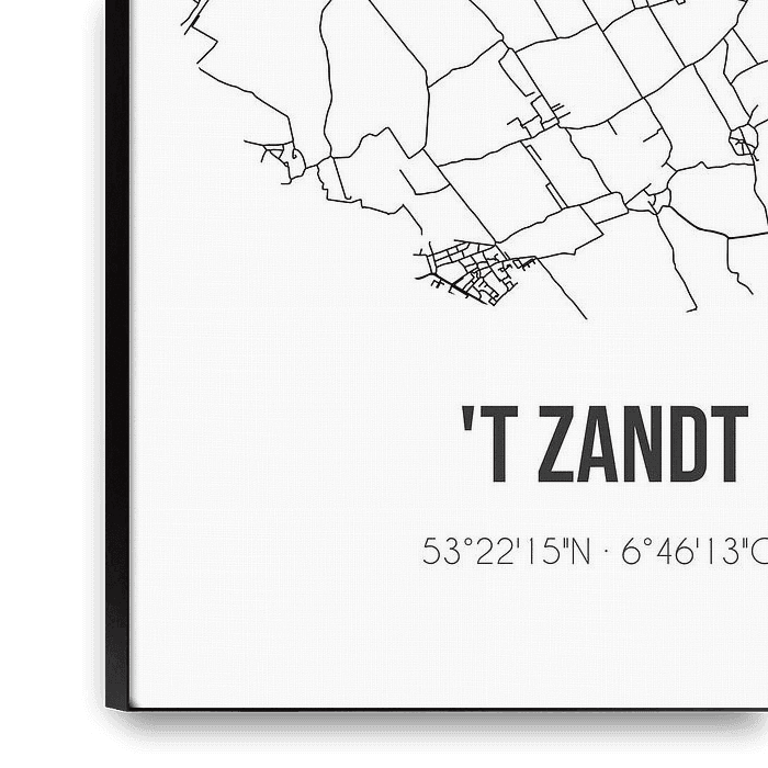 Koop dit abstracte kunstwerk 't Zandt (Groningen) | Landkaart | Zwart-wit van Stad & Wand op canvas, aluminium dibond, (ingelijste) fotoprint, behang en ArtFrame, op maat geprint in Fine-Art kwaliteit.
