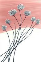 Dit kunstwerk heeft een elegant en minimalistisch ontwerp dat perfect zou passen in een modern boho of Scandinavisch interieur. Het werk is sterk in eenvoud met geschilderde bloemen en een roze beige achtergrond.