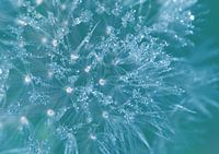 Macrobeeld van een paardenbloem met dauwdruppels.