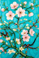 Tegeltjes van gogh bloesem is een kunstwerk van Karin van Bylevelt met ondersteuning van AI, geïnspireerd op Van Gogh’s bloemrijke stijl