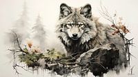tekening van een wolf van Gelissen Artworks