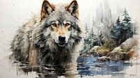 tekening van een wolf van Gelissen Artworks