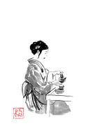 SUMI-E is een Japanse techniek die in de 6e eeuw van de Chinezen werd geleend. Het is een wassing die wordt verkregen door verdunde Oost-Indische inkt op papier aan te brengen.