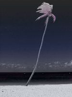 Palmboom op een tropisch strand met Infrarood finish.