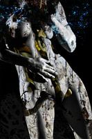 De tijd tikt, schoonheid vergaat, het leven valt uiteen in zijn vergankelijke onderdelen. Het lichaam van een vrouw, waarin een uurwerk tikt en de vernietiging voortstuwt. Al mijn beelden zijn ontstaan uit eigen foto's, die ik gedurende vele jaren van fotografisch creatief werk heb gemaakt. Daarin zit mijn enthousiasme voor abstracte…