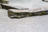 traditionele japanse zentuin, grijze stenen en platte rotsen