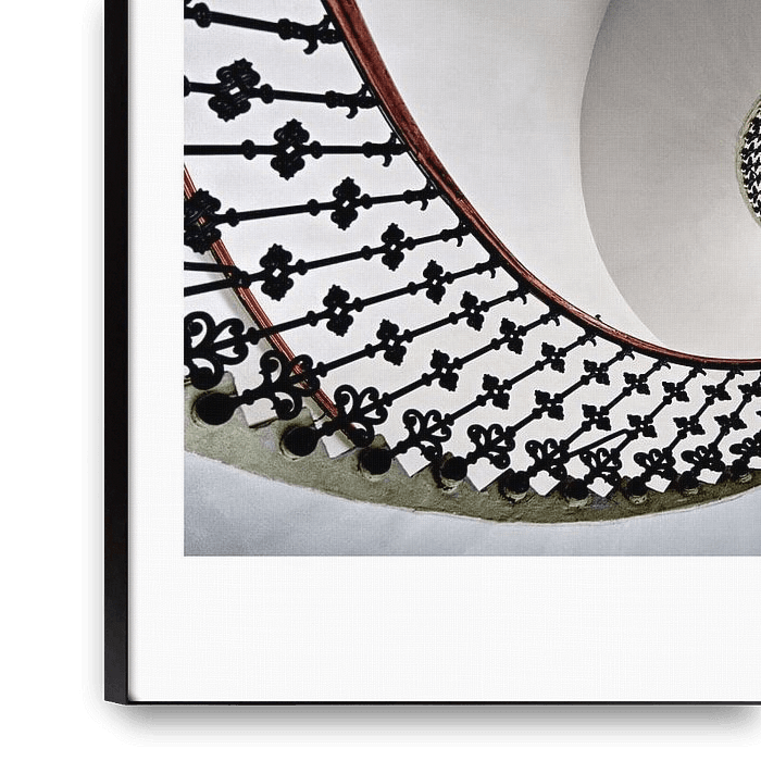 Dit werk toont de indrukwekkende esthetiek van een architectonisch detail - een wenteltrap die door kundig spiegelen een fascinerend kunstwerk wordt. De trapleuningen van de trap kronkelen in symmetrische spiralen die elkaar in het midden lijken te ontmoeten, waardoor een optische illusie van oneindigheid ontstaat. De gebogen lijnen en…