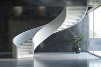 allerlei soorten trappen in en rondom huis of gebouwen, klassiek of hyper modern en alles er tussen in. Basic of home-design gemaakt met AI en/of Photoshop