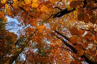 Deze beuken lijken tot in de hemel te groeien. Mooi contrast met de strak blauwe lucht