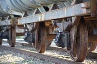 de oude mijn in tessenderlo een prachtig beeld van oud metaal in roest en gebroken glas waar het mijnverleden terug tot leven komt . koolmijn , ijzer, spoor van de trein wagens, oude treinwagon , steenkoolmijn, treinwiel
